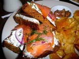 On the eleventh day of Christmas, my waiter brought to me clockwise from top: Barney Greengrass' Nova Scotia salmon; L'Atelier de Joël Robuchon's caramelized eel layered with smoked foie gras; Aureole's grilled burger with smoked bacon; Marfa's rack of smoked babyback ribs; Kesté's pomodorini e provola pizza with smoked mozzarella; Anthos' smoked octopus with lemon confit; Lamazou's smoked "Smart Duck" sandwich; Spina's smoked salmon and poached eggs with caviar cream; Sarabeth's Goldie Lox with scrambled eggs; and The Smile's Nova with lemon caper cream cheese.