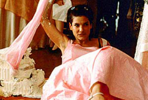 In The Wedding Singer, Robbie Hart, a left-at-the-alter groom, befriends the affable and adorable Julia. Julia, of course, is engaged to be married, but that doesn't stop Robbie from forming a tight bond with the beautiful bride-to-be. He even helps her taste-test wedding cakes. A cake-eating conga line of sorts forms and Robbie, always the lucky one, gets to feed cake to the less-than-attractive shop owner. How fun.