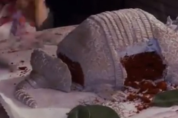 All Jackson Latcherie wanted on his wedding day was a red velvet armadillo groom's cake. That cake became a huge topic of contention, since the red velvet made it look bloody and scary. But the scene stealing was between the bride's father, Drum, and neighbor Ouiser. The pair had been feuding all day. Drum tries to smooth things over and Ouiser accepts his apology by giving him the rear end of the armadillo. Yum.