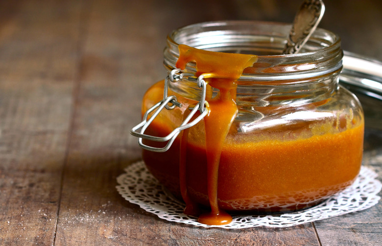 A sweet addition to the savory choices shown here, this salted caramel dip pairs perfectly with sliced apples and frozen bananas for an easy cookout dessert.
