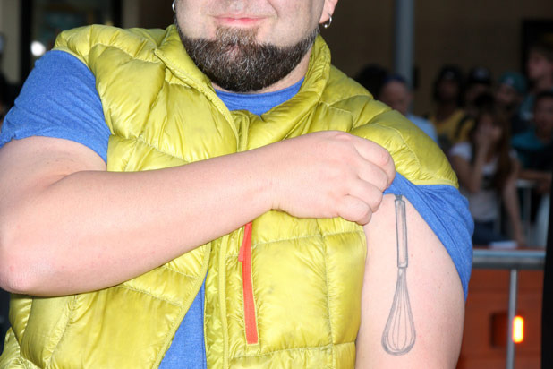 Ace of Cakes baker Duff Goldman loves whipping up the sweet stuff. So does that explain his whisk tattoo, on his left forearm? Goldman told Food Network, "People meet me and don't believe that I'm a baker, so I got a tattoo of a baking implement. As for other tattoos, I can't show them in public."