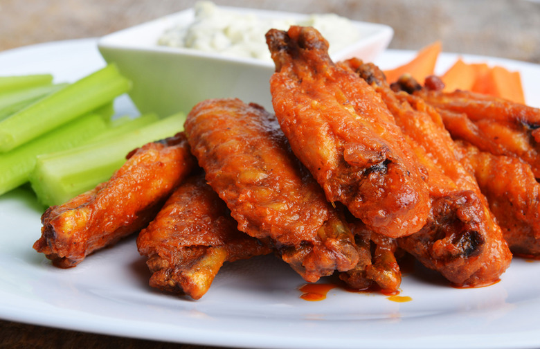 If you want something less messy and even quicker than the crispy Buffalo wings, try this Buffalo chicken dip recipe for all of the flavor you love in wings in an easy dip. Serve with tortilla chips and raw vegetables.