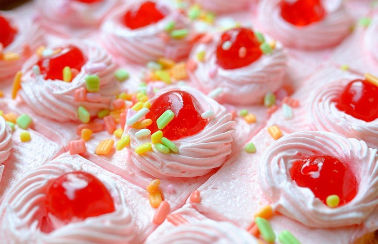A simple boxed strawberry cake, made with extra fresh strawberries and vanilla pudding, is then topped with Funfetti-filled whipped cream for the most colorful, kid-friendly, homemade cake.