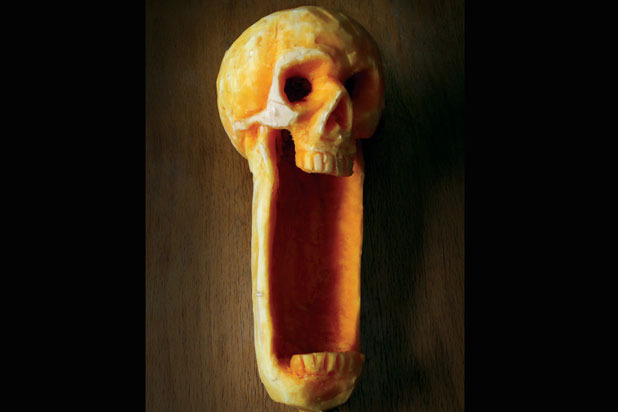 When set upside down, a butternut squash makes the perfect medium for a carved creature resembling a Scream mask. Set the squash on a wooden stake and place it in the front yard to scare trick-or-treaters when they come to visit.