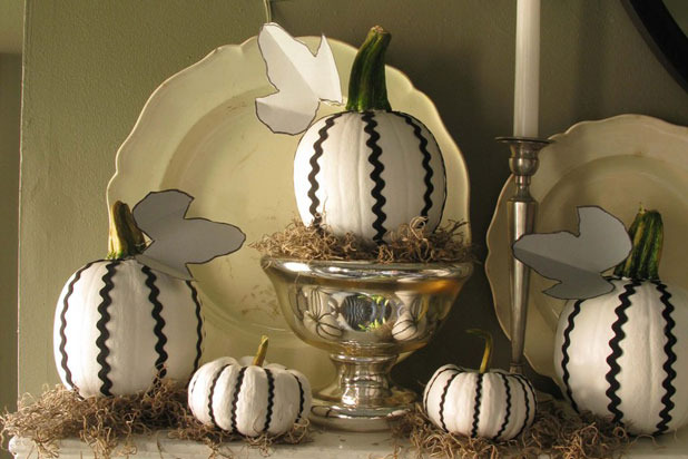 Another no-carve, crafty way to decorate pumpkins without pulling out the paintbrush is to use ribbons and ric-rac to create colorful designs that will stand out amongst the rest.
