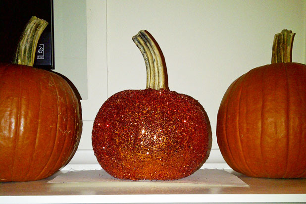 Sparkling and stunning, what is not to love about a glittered pumpkin? With some Elmer's craft glue, and fine glitter (or glitter spray), it's easy to make your own at home in an afternoon. Smaller pumpkins, usually less than 12 inches in diameter, work best.