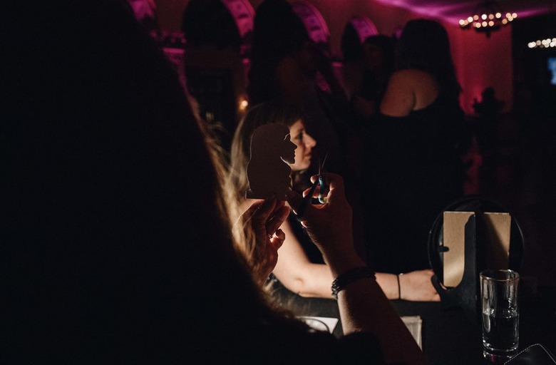 It's popular to pose for pictures with a beautiful backdrop at a wedding, but why not throw it all the way back to the 18th and 19th centuries? Silhouette portraits are a stylish and wonderfully vintage idea for wedding favors. A silhouette artist can mingle with guests and cut accurate likenesses of them on a black card for guests to take home.