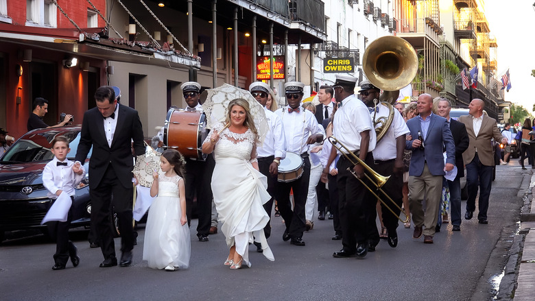 Who doesn't love the pomp of a sousaphone to celebrate a big occasion? If you and your beloved are band nerds to the bone, or even just enjoy a spectacle, throw a mini-parade in the middle of your reception by hiring a marching band for entertainment.