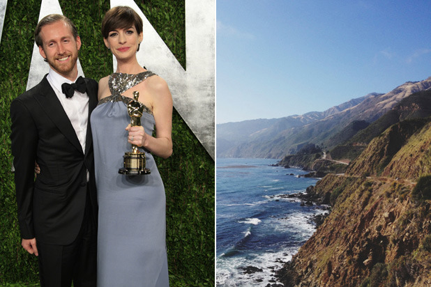 Anne Hathaway and Adam Shulman hosted their wedding rehearsal dinner at the Restaurant at the Ventana Inn, in Big Sur, Calif. Fifty guests joined the couple to enjoy a three-course menu that included organic beets, hand-harvested diver scallops, Colorado grass-fed lamb, a cheese course of Saint-André triple cream served with honey, and a coconut and ginger panna cotta. The picturesque views of the Pacific Ocean and the surrounding mountains made the destination a perfect venue for the rustic-themed wedding the following day. The menu on their eco-friendly wedding day followed a similar theme: guests were presented sustainable food choices including veggie burgers and truffle macaroni and cheese, followed by cupcakes.