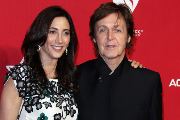 In 2011, Paul McCartney (a noted vegetarian) and Nancy Shevell tied the knot at Old Marylebone Town Hall in London. Afterward, the wedding party proceeded to McCartney's St. John's Wood home, where dinner was served. A vegetarian menu was presented to the guests, which started with an arugula and basil salad, followed by a goat cheese polenta, savory tarts, and dumplings. After plates were cleared, an elderflower crème fraîche with mixed berries was brought out to go along with two Posh Puds Patisserie made wedding cakes: one chocolate cake, and one apple vegan option.