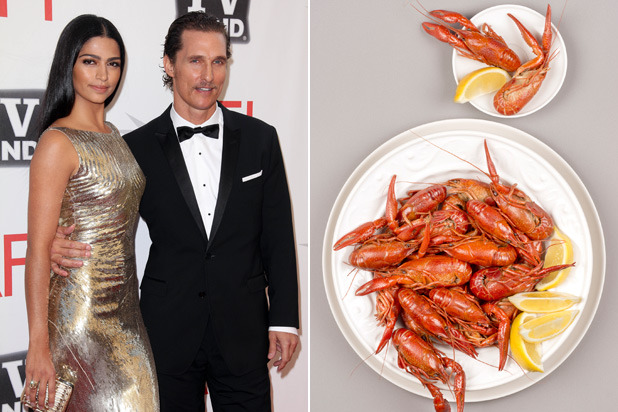 For their summer wedding in 2012, Matthew McConaughey and his longtime girlfriend Camila Alves tied the knot during a three-day tropical island and Texas-themed celebration at their estate in Austin, Texas. In honor of the bride's Brazilian heritage, Brazilian meats like top and bottom steak, chicken wrapped in bacon, and pork sausages with cheese bread were all catered by Brazilian steakhouse Estancia Churrascaria. Instead of a wedding cake, the couple chose to serve an array of desserts. The next day, celebrity chef Guy Fieri prepared a Southern feast of classics like brisket, crawfish, and fried okra.