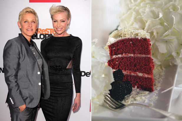 Mindy Weiss planned Ellen DeGeneres and Portia de Rossi's intimate backyard wedding in 2008. Since they're both vegans, their personal chef David Silberkleit catered the night's menu. Guests enjoyed vegetable spring rolls to begin, and miniature vegan sliders. Their vegan red velvet wedding cake was created by West Hollywood bakery Sweet Lady Jane. The next day, the couple ventured to a favorite Los Angeles vegan restaurant Real Food Daily.