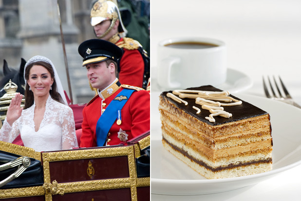 During the Queen's reception for Prince William and Kate Middleton's 2011 wedding, a royal luncheon was served featuring favorite classic British foods. The 10,000 canapés were prepared by 21 chefs who used ingredients only from the United Kingdom, and it was all orchestrated by royal chef Mark Flanagan. The appetizers included a Cornish crab salad served on lemon blinis, a pressed duck terrine, goat cheese and caramelized walnut roulades, miniature watercress and asparagus tarts, Scottish langoustines, smoked haddock fishcakes, miniature Yorkshire puddings with roasted fillets of beef, quail eggs with celery salt, and savory baked finger foods like cheese straws. Afterward, the sweets were served: an opera cake, raspberry mini cakes, rhubarb crème brulée tartlets, passion fruit pralines, milk chocolate pralines, and white dark chocolate ganache truffles. To wash it all down in style, guests were poured Pol Roger NV Brut Reserve Champagne.
