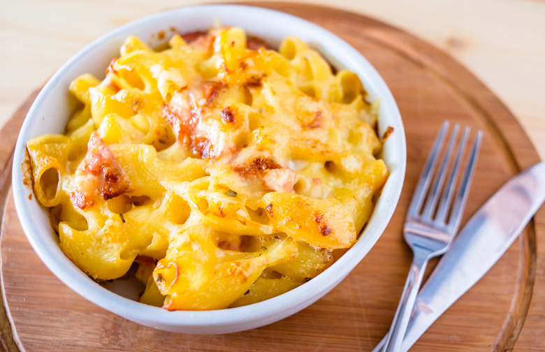 Three cheeses and a kick of spice give this comfort favorite a whole new story. For the ultimate trio, combine any two sharp cheeses, in this instance, two bold Irish Cheddars, with a smoother Gouda. When blended together, they make for a creamy, cheesy, spicy dream — one spoonful will just not do the trick. — Francesca Borgognone