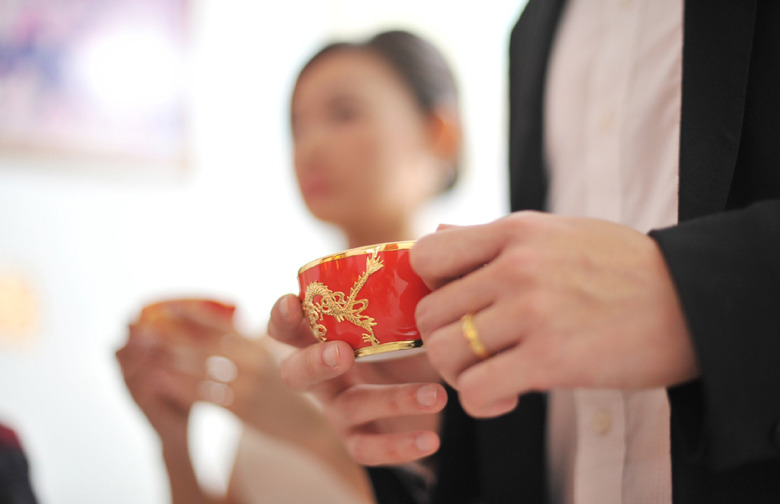 Though Chinese weddings have become Westernized in many ways, the tea ceremony still plays an important role. The bride and groom will gather their parents, grandparents, and other honored relatives and serve them tea as a sign of respect. Though traditionally the bride's and groom's families were served separately, today there is commonly only one tea ceremony and the event is seen as a joining of the two families.