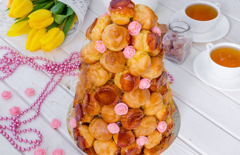 Croquembouche are one of the most difficult desserts to make, but the results are always impressive. These small, circular pâte à choux pastries are piled high on a nougat base and beautifully decorated with spun sugar. They're light, delicious, and a stunning alternative to a classic wedding cake.