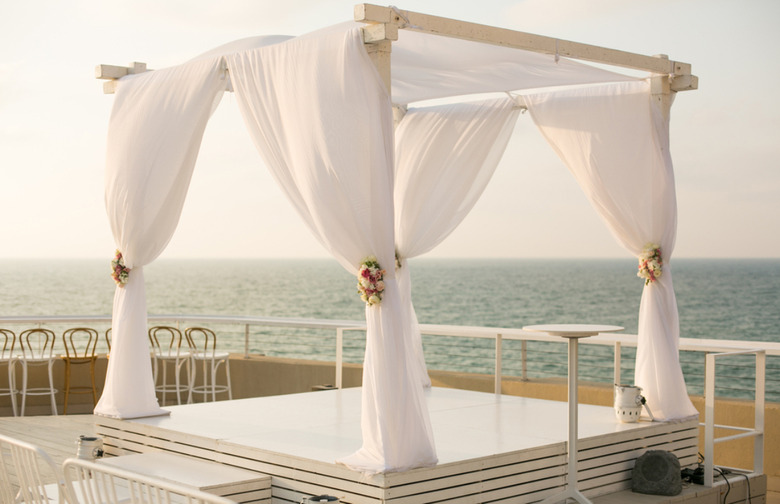 In Israel and at other Jewish weddings, the couple gets married under a chuppah, or canopy, consisting of four poles and a sheet. It symbolizes a Jewish home and hospitality and acts as the couple's first home together.