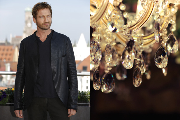 Gerard Butler's loft in New York's Chelsea neighborhood took design cues from a medieval castle — it even has a crystal chandelier hanging over the dark wooden kitchen island. The dark wood theme continues throughout the entire space, including the cabinets and floors. His high-tech appliances include a built-in espresso machine and an intricately detailed sink. Butler describes the space as a "bohemian old-world rustic chateau with a taste of baroque."