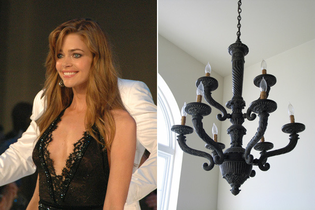 Denise Richards hired interior decorator Kara Smith to transform her Los Angeles home into a place that she could call her own. The centerpiece of her massive Tuscan-inspired kitchen is a unique U-shaped silver quartzite island that doubles as a bar. Other design features include a medieval-looking chandelier that hangs from sky-high beamed ceilings, and sand-colored stone inlays on the walls. Large windows let in plenty of light to keep the room feeling open and inviting.