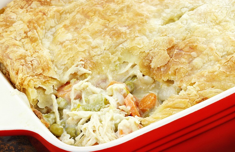 A classic chicken pot pie in a rich, creamy sauce with a flaky crust is a real crowd-pleaser.
