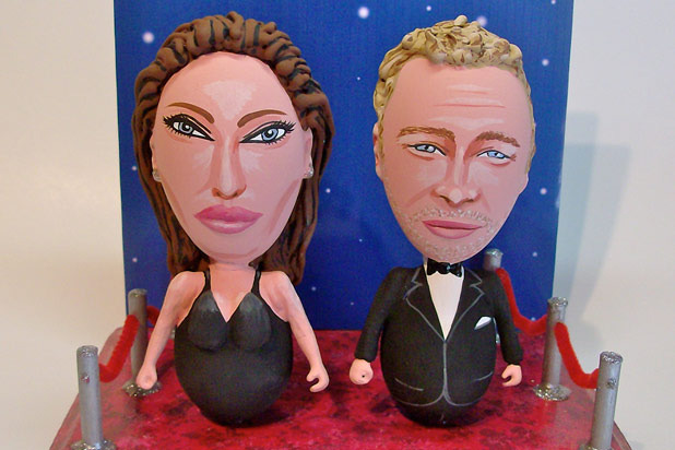 Hollywood super-couple Angelina Jolie and Brad Pitt are immortalized on the red carpet as eggs. We can't get over how that Brad one is so spot on...