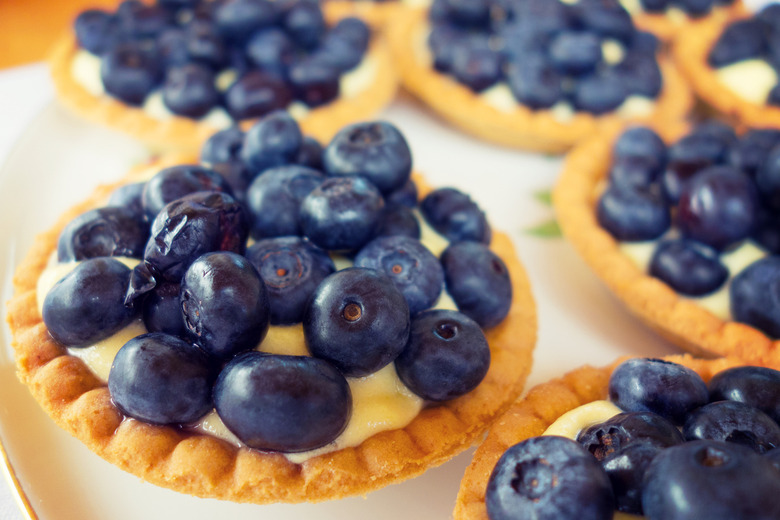 Ripe berries, a cream with fresh lemon curd, and a sugary, light tart shell make for a delicate and delicious end to a potluck plate.