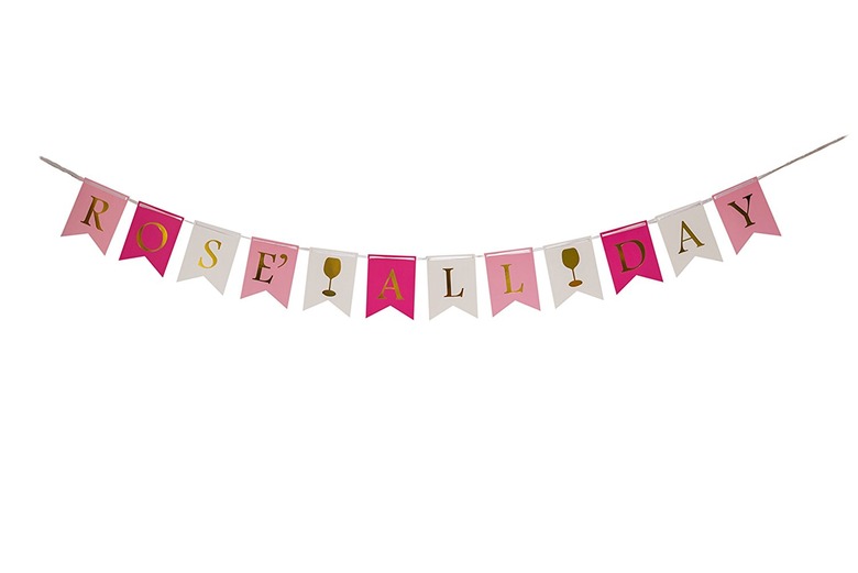 Perfect for photo booths, brunch parties, or any rosé lover's kitchen, this pretty pink, white, and gold banner is cheerful and playful.