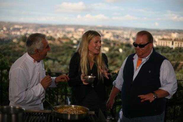 These two met in the late 90's when Paltrow often dined at Batali's restaurant Babbo and have been close friends ever since. Paltrow, a self-proclaimed food lover and cookbook author herself, found a kindred spirit in the acclaimed chef Batali who is known for his Mediterranean-inspired cuisine. The two both starred in the PBS series Spain...On the Road Again in which they dined and traveled their way through the country and co-authored the cookbook Spain...A Culinary Roadtrip about their travels. Batali and Paltrow are close family friends, as well, and he has been featured on her online lifestyle magazine, GOOP.