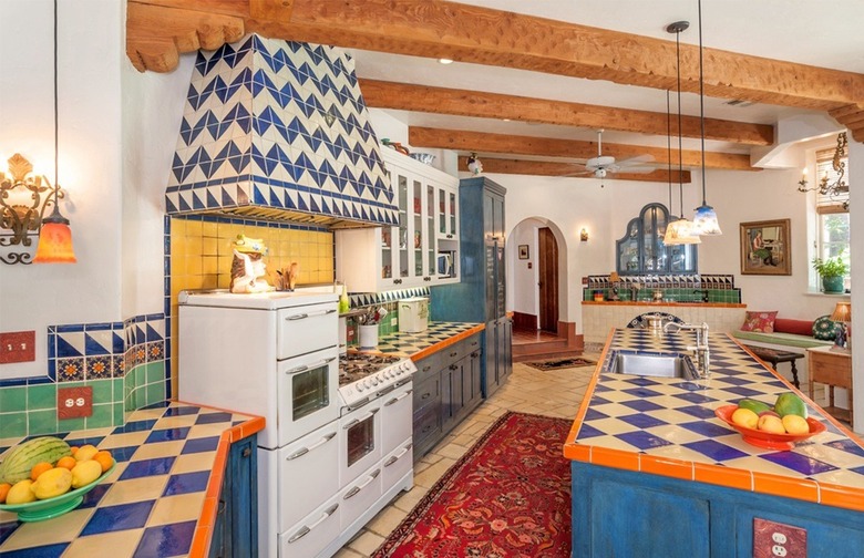 Actress Annie Potts recently sold her beautiful, colorful home in Tarzana, California. We love this bright, tiled kitchen, which is a refreshing change from the sleek, minimalist kitchens we normally see in celebrities' homes. Spanish and Moorish influences have been blended with an old-school LA style in this refurbishment, which Potts oversaw every detail of herself.