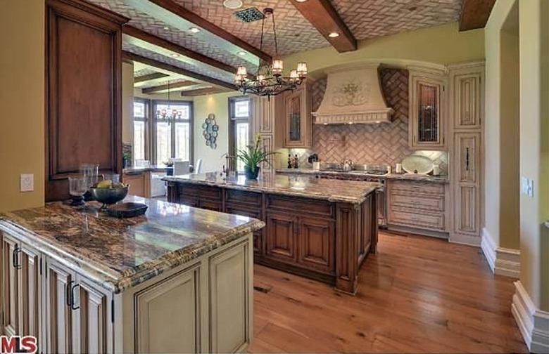 Kim and Kanye's mansion has an enormous kitchen, which looks as if it's in a French country house rather than in one of the most expensive areas of Los Angeles. The beamed ceilings, huge gas oven, and marble countertops make this space the kitchen of our dreams.