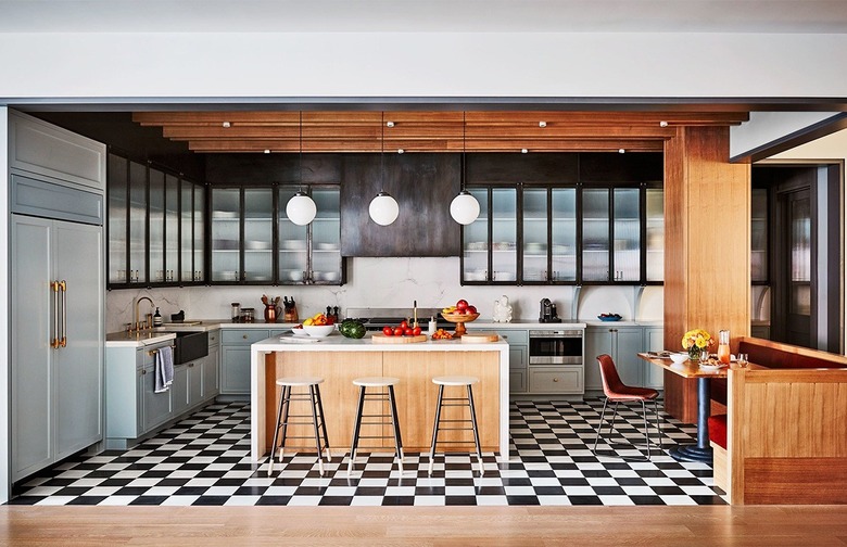 The kitchen in Naomi Watts' Manhattan loft is the perfect mixture of chic, simple, and fun. The black and white checkerboard -tiled floor, baby blue cabinetry, and stunning pendant lamps all come together to create a family kitchen we can imagine being filled with the happiest parties and family get-togethers.