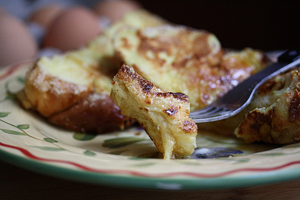 There is no need to change out of your pajamas to make some cornmeal-crusted French toast and boozy hot chocolate — it's just the way to enjoy a lazy weekend day at home when it's cold outside.