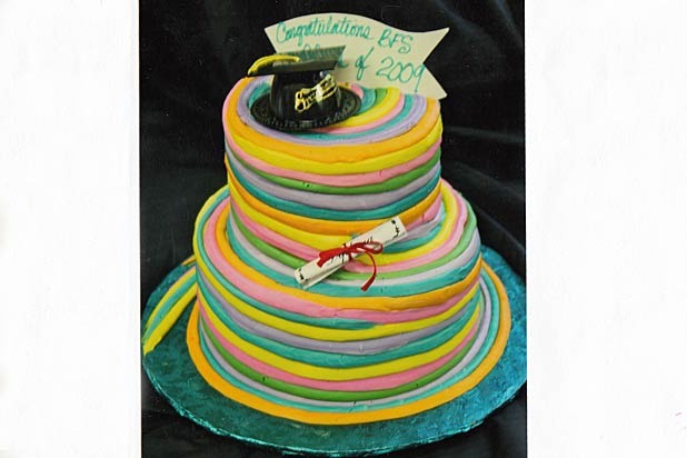 This is how cakes used to be. Because there is no need to go way over the top when honoring a graduating class.