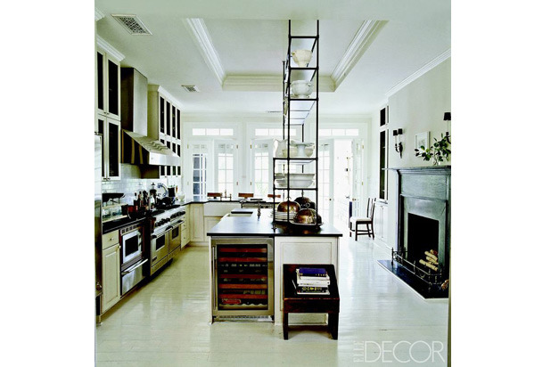 "In the kitchen of designer Darryl Carter's DC townhouse, the étagère is an Italian antique, the wine refrigerator is by Sub-Zero, and the range and hood are by Viking." See more. —ELLE Decor