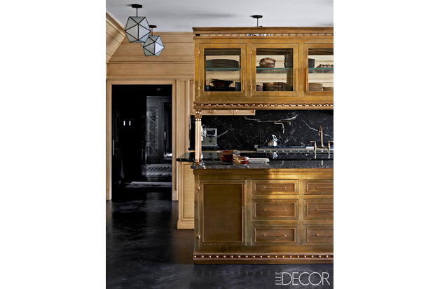 "This is a very unique kitchen. I love the gold, it makes it very interesting along with the dark stone and stylish woodwork. An unusual but very special kitchen." —Alex Papachristidis, Alex Papachristidis Interiors