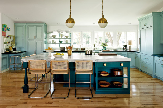 "I think the color play is wonderful, but the cabinetry is a tad overcomplicated. I love the use of vintage kitchen equipment, the overall effect is highly appealing." —Robin Bell, Robin Bell Design, Inc.