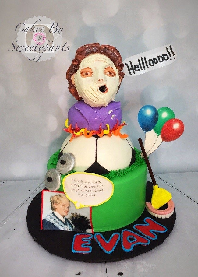 It should come as no surprise that Evan's love of Mrs. Doubtfire comes from his mom, Laura, who had to enlist her artist cousin to draw up the movie-themed party details. Apparently, Etsy and Pinterest are totally devoid of Mrs. Doubtfire party décor.