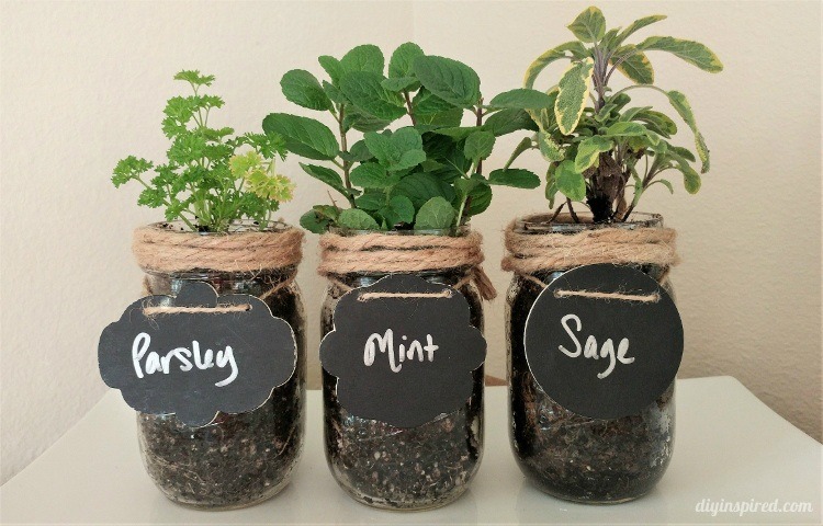 These DIY Mason Jar Herb Gardens are simple and convenient- you can place them right in your kitchen window. All it takes is some mason jars, potting soil, water and your seeds of choice to jump start your own little home garden. Don't forget the cute chalkboard labels to affix to the jars!