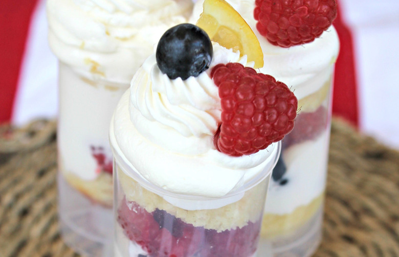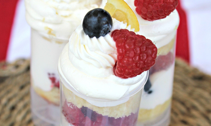 Push pops are another fun treat for summer. Perfect for kids or to impress guests when entertaining, these homemade layered pops are great for portion-controlled dessert. Simply layer your lemon pound cake in mini plastic trifle pop molds with lemon cream and fresh berries, then top with whipped cream to complete these DIY handheld trifles.