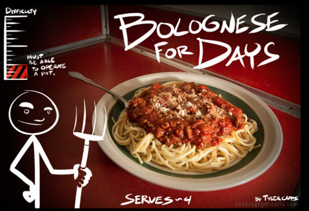 This recipe, "Bolognese for Days," is featured on Capps' website, His book, "Cooking Comically," just went on sale this month