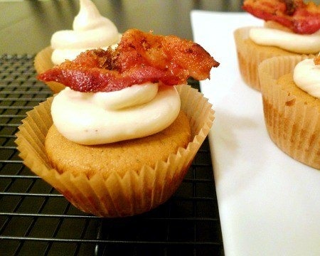 No outrageous junk food roundup would be complete without unnecessary bacon. The crispy meat is balanced by a cream cheese frosting and a perfectly spiced cake.