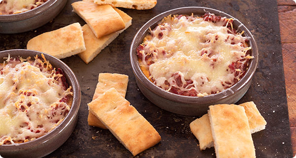 This twist on the classic Reuben sandwich transforms into the perfect dish for a crowd. With just a handful of ingredients, this comfort dip is ready in under 30 minutes. Skip the chips and dunk with Krusteaz Garlic and Onion Flatbread sticks.