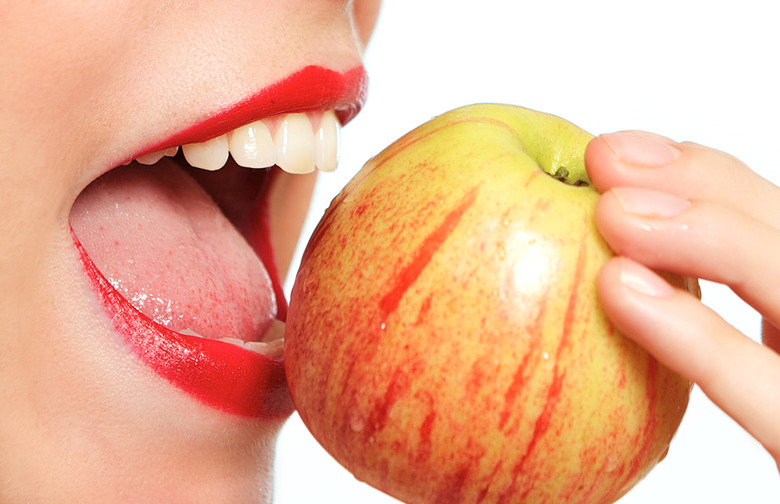 Eat an applefor shiny, white teeth. Or better yet, crush it up and brush with it, says founder of Organic Healthy Lifestyle Nancy Addison. "Apples and strawberries contain malic acid and vitamin C," Addison says. "The malic acid is like an astringent that helps remove surface stains, and the vitamin C helps remove plaque. You can brush with a little grated apple once in a while."