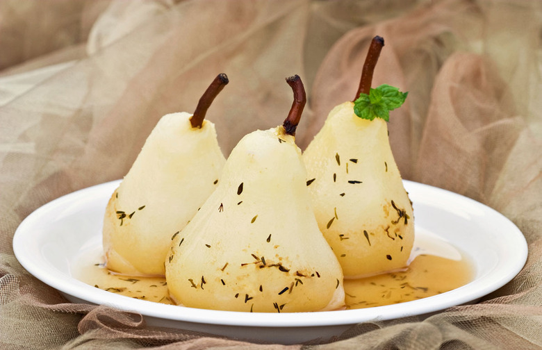 Fruit desserts don't always feel like dessert, but ginger and jasmine tea poached pears are redolent of the season and can make for a tasty holiday treat on the healthier side. The warm pears can be served on their own, drizzled with the fragrant poaching liquid, or with spicy ginger snap cookies. Mix it up and put them on angel food cake with toasted walnuts.