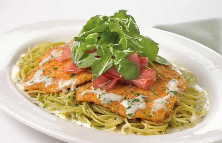 Creamy pasta is topped with breaded chicken, prosciutto and peppery arugula. It is a perfect dish to serve at a dinner party and will satisfy even the toughest-to-please guest!