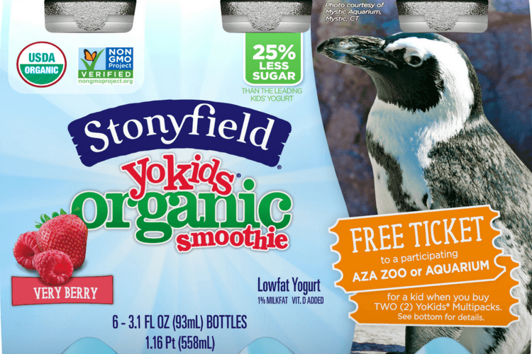 Now through the end of September, families who buy two YoKids yogurt packs can visit http://www.stonyfield.com/azasafe to get a free kid's admission to a participating AZA-accredited zoo or aquarium with the purchase of a full-price adult ticket. AZA SAFE (Association of Zoos and Aquariums': Saving Animals From Extinction program) supports the conservation efforts for 10 endangered species, including the African penguin.