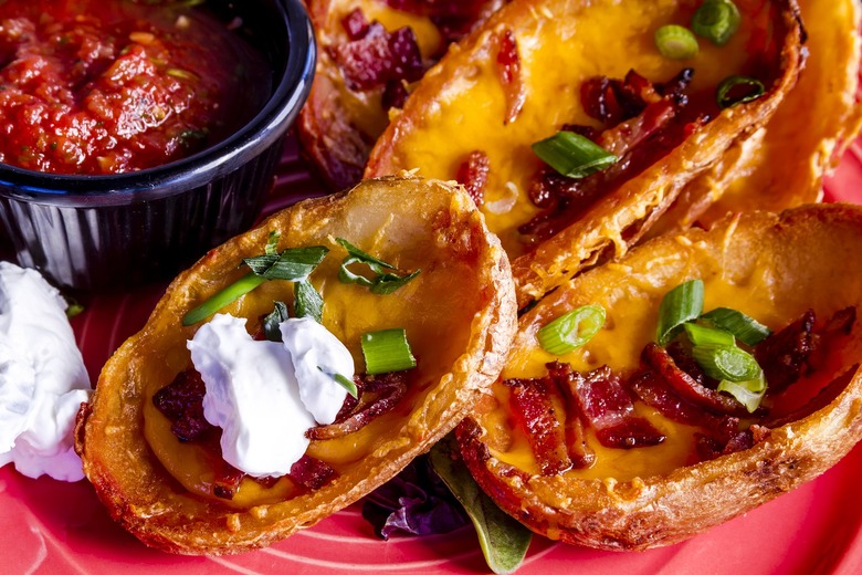 What's not to love about the classic combination of cheddar cheese and bacon melted onto a crisp russet potato skin and topped with sour cream and chives? You can jazz it up with brie and prosciutto or chorizo, leave off the bacon, add extra chives, dip it in ranch or whatever else tickles your fancy.