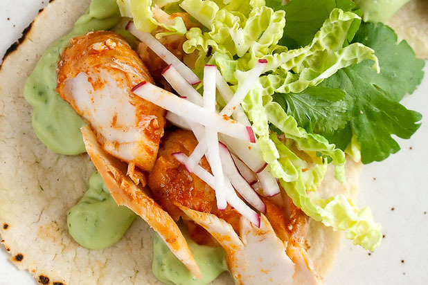 Spicy Fish Tacos with Avocado-Yogurt Sauce