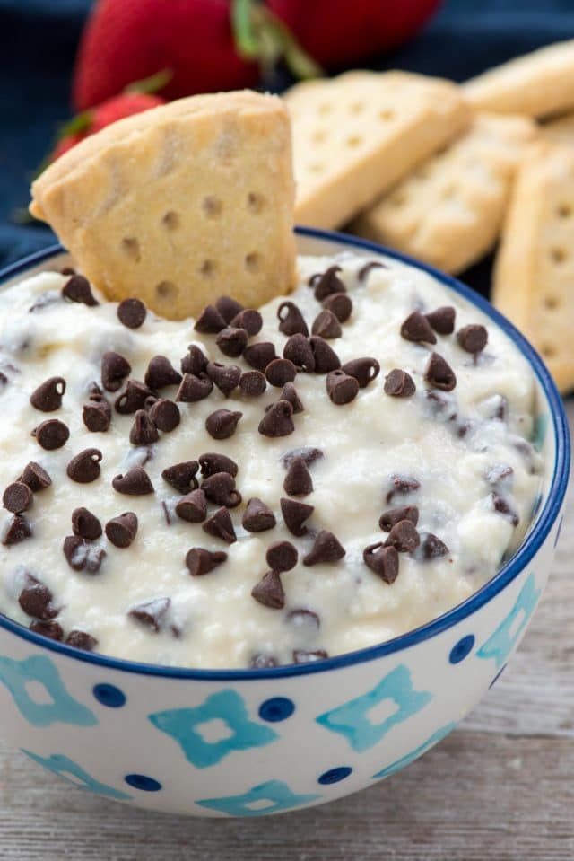 An easy dip that tastes just like the inside of a cannoli? Yes – please! Make a bowl of this dip and keep on hand for impromptu summer guests. Simply dip Shortbread Triangles in it or use as a sandwich cookie filling. It's the perfect no bake summer recipe!
