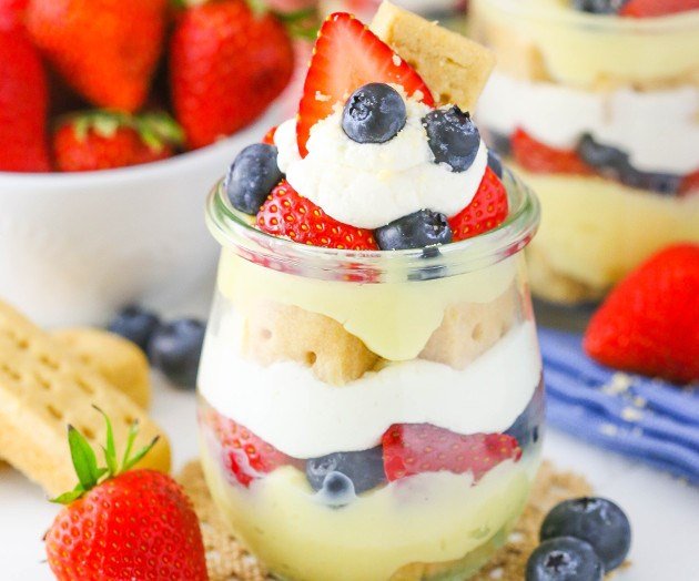 If you're hosting the Fourth of July party this year, keep it simple with a dessert that doubles as a refreshing treat and also matches your red, white and blue tablescape. Simply whip up a creamy custard and layer with crumbled Shortbread Fingers and fresh blueberries and strawberries for a dessert that's as A-merican as it is A-mazing.